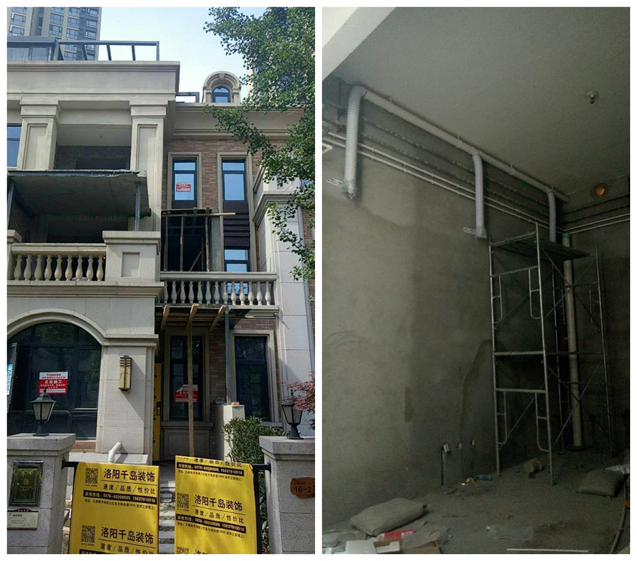 ①【君河灣別墅】中央空調(diào)已完工,新風(fēng)系統(tǒng)和水電改造交叉施工中
