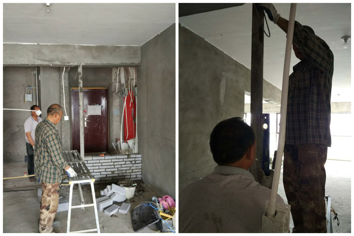 ②【漢德里院里】工地前期拆除完工,泥瓦工開始粉刷