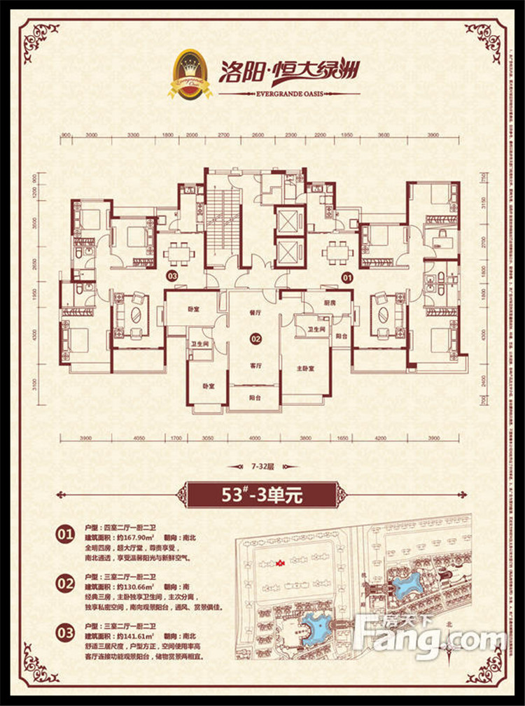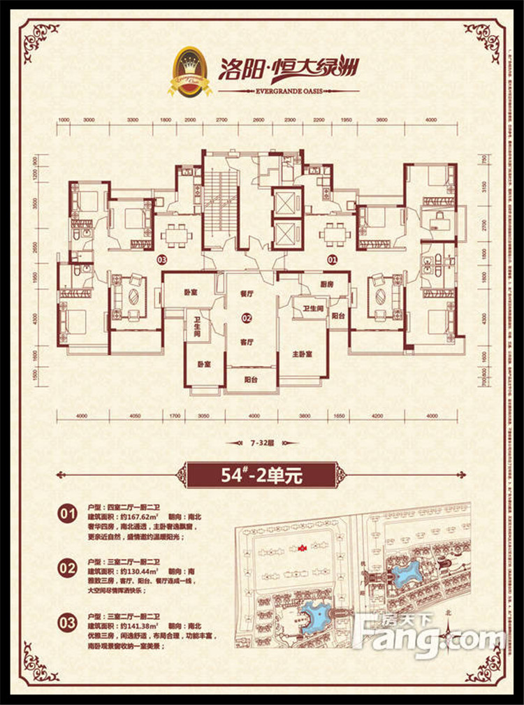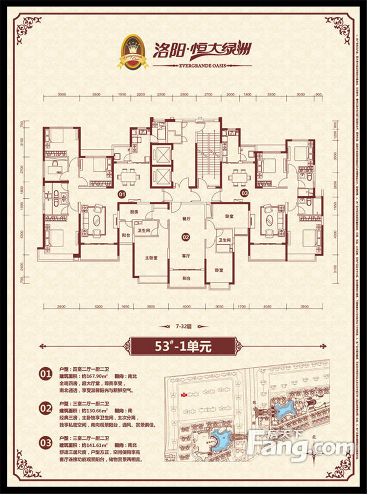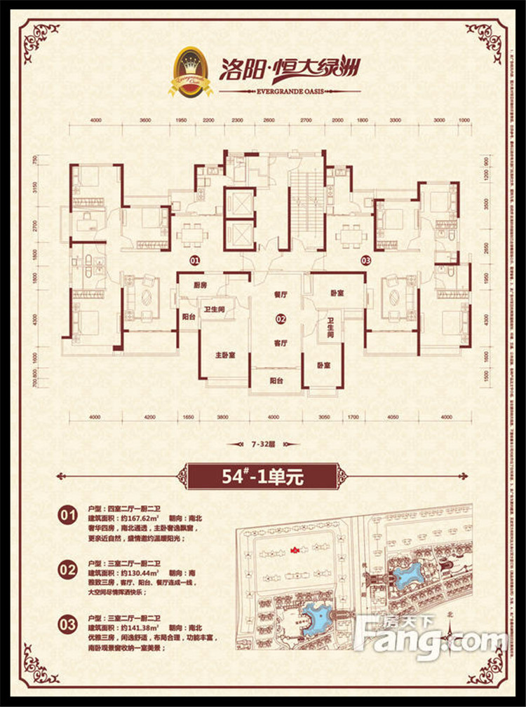 恒大綠洲項目位于洛陽市瀍河區(qū)洛陽市東出口,洛河以北、中州東路兩側(cè)、二廣高速以西,項目獨享洛河北岸3500多米河岸線,且處于洛陽市城市東西中軸線中州路東段,臨中州路街面長2000余米,有多路公交車直達。恒大綠洲全部項目占地面積約1338畝,規(guī)劃建筑面積近301萬平方米,居住單位2.06萬余戶,除居住建筑外,項目內(nèi)還配置了運動中心、綜合樓(會所)、幼兒園、小學、中學、商業(yè)配套、五星級酒店等,整個項目建成后,將形成約6.6萬人的居住規(guī)模。全部項目累計總投資超過100億元人民幣,預(yù)計上交稅收超過15億元人民幣。