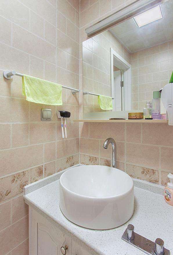 浴室,這種洗手盆不容易讓水濺出來(lái),特別實(shí)用,為了干濕分離還買(mǎi)了一個(gè)浴簾。