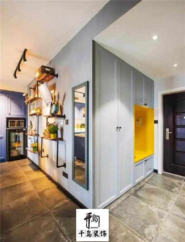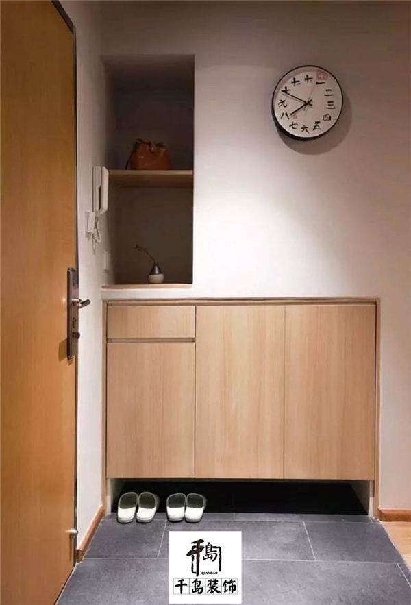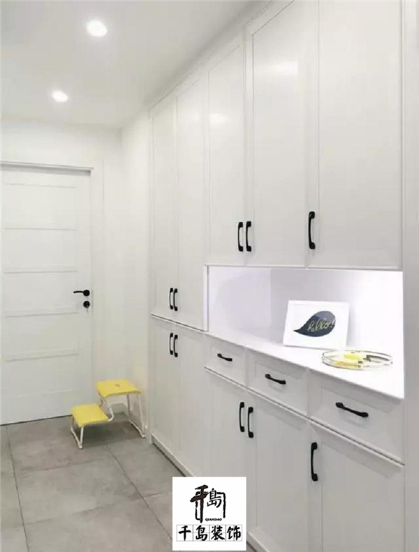 玄關(guān)的鞋柜如果直接擺個(gè)鞋柜,頂部空間就要浪費(fèi)掉,對(duì)于鞋子較多的家庭而言似乎有點(diǎn)浪費(fèi)了;那么這個(gè)時(shí)候如果通過(guò)硬裝的方式,把鞋柜與墻體嵌入安裝在一起的話,就顯得大氣舒適很多了。