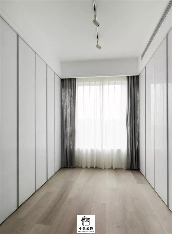 衣帽間收納空間可以說是很大了,兩面墻都是收納柜,滿足收納需求,又給人清爽干凈之感。