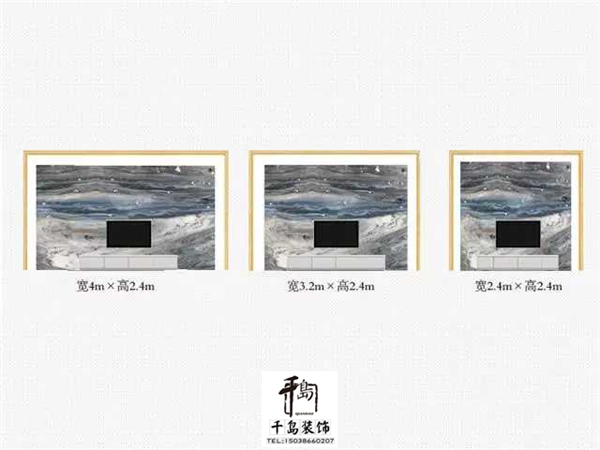 在設(shè)計背景墻的時候我們一定要考慮好背景墻的大小,主要是根據(jù)背景前的主體決定的,例如:電視。大理石尺寸方面的話呢通常是用80㎝規(guī)格石板拼裝,這樣比較容易運(yùn)輸以及安裝,不過也可以選用一個整版。