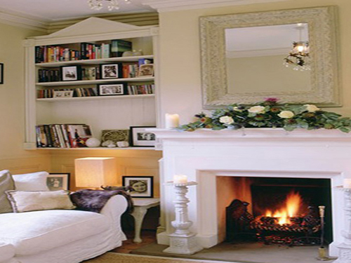 壁爐的設(shè)計(jì)一般都是突出一塊,所以?xún)蛇呑匀痪蜁?huì)凹陷下去。在壁爐與墻面之間特制一個(gè)書(shū)架,用來(lái)收納圖書(shū),然后再空余的空間里放上一些裝飾品或者相框,讓你又增加了一個(gè)功能。