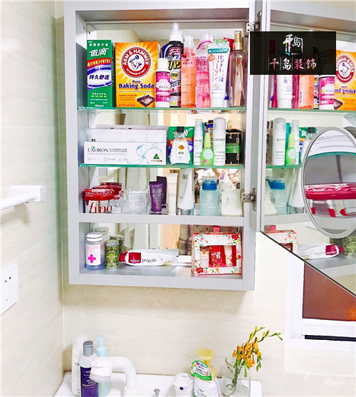 次衛(wèi)的鏡柜,很多護(hù)膚品因為不常用所以用來收納大法啦。