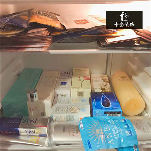 這個小冰箱專門用來放面膜和沒開封的護(hù)膚品,還有一些能及時拿的飲料和水,超級實用。